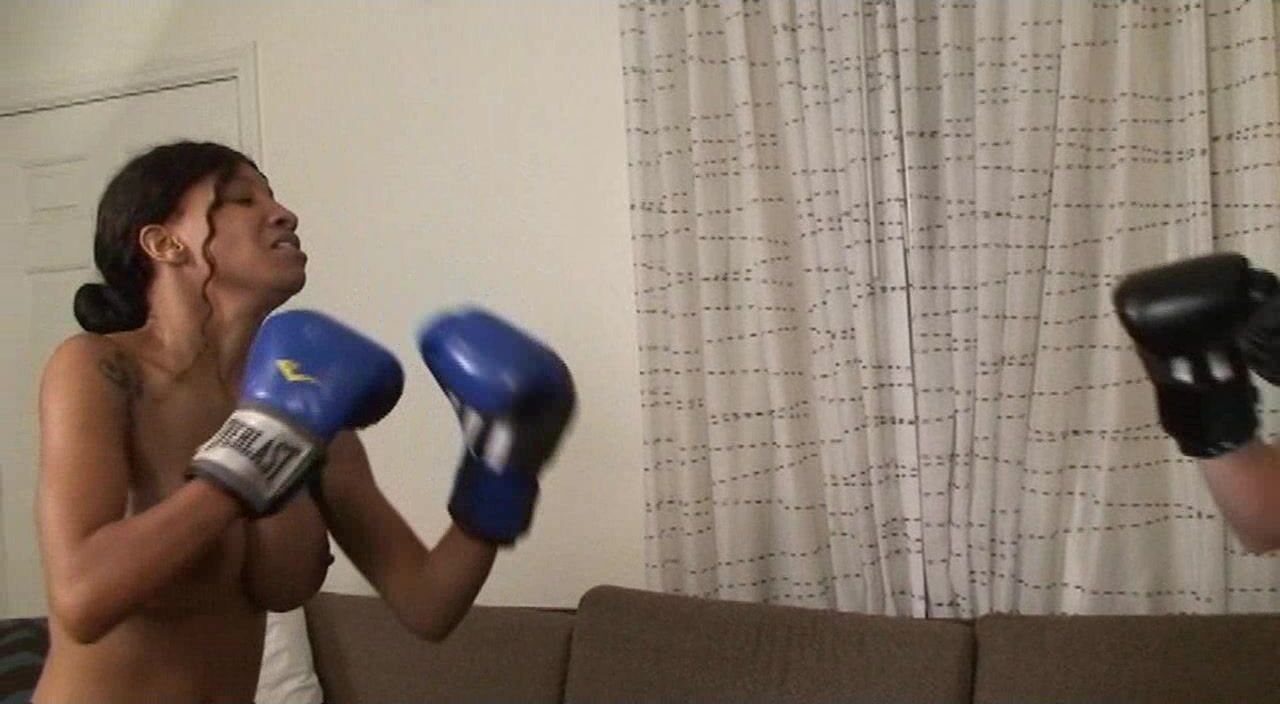 Cassie Del Isla and Nadina White lesbian topless boxing